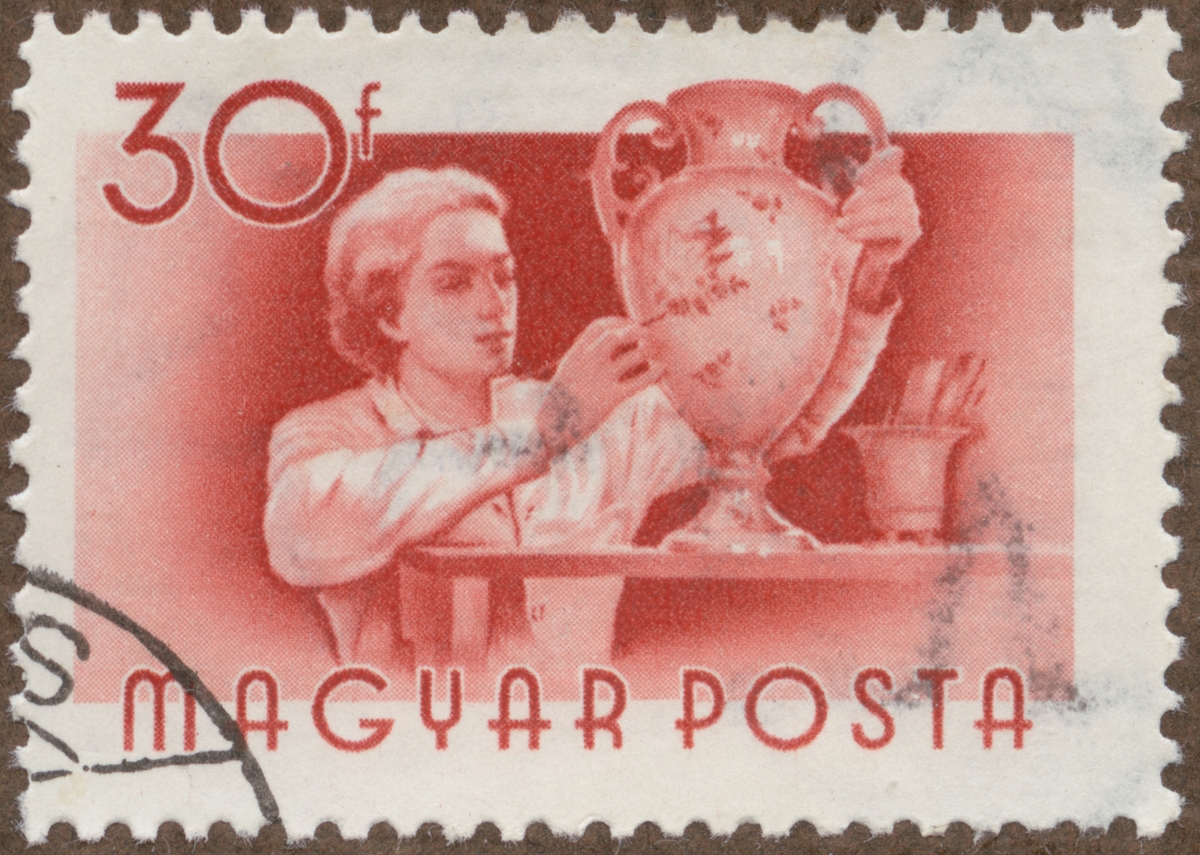Frimärke från Ungern, 1955. Motiv av ungersk keramikdekoratörska (dekoratör). "Yrkesserie".