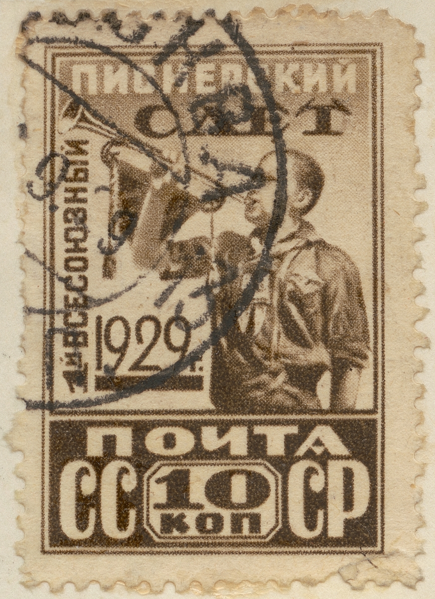 Frimärke från Ryssland, 1929. Motiv av Signalblåsare