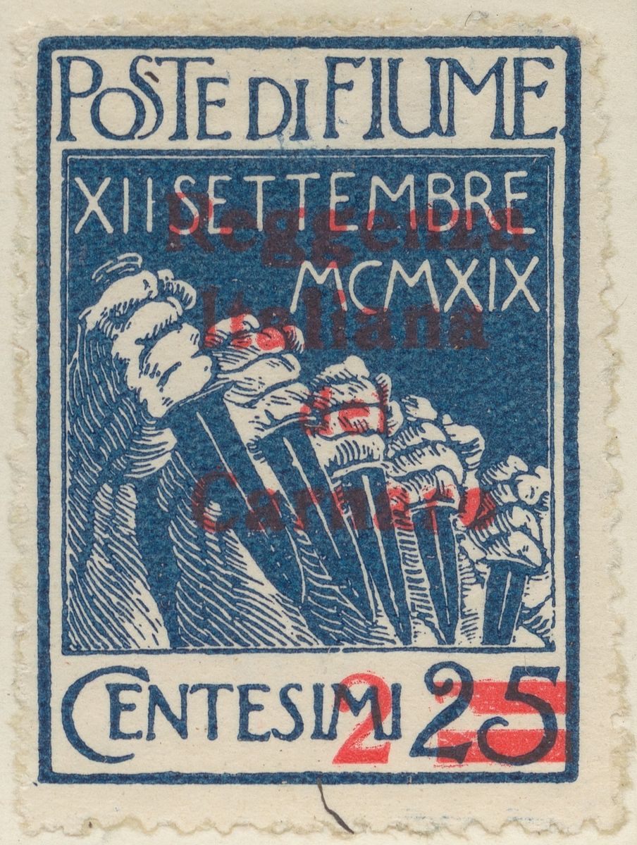 Frimärke från Fiume, 1920. Motiv av Arditernas dolkar -Symbol för d´ Annunzios Frivilliga.