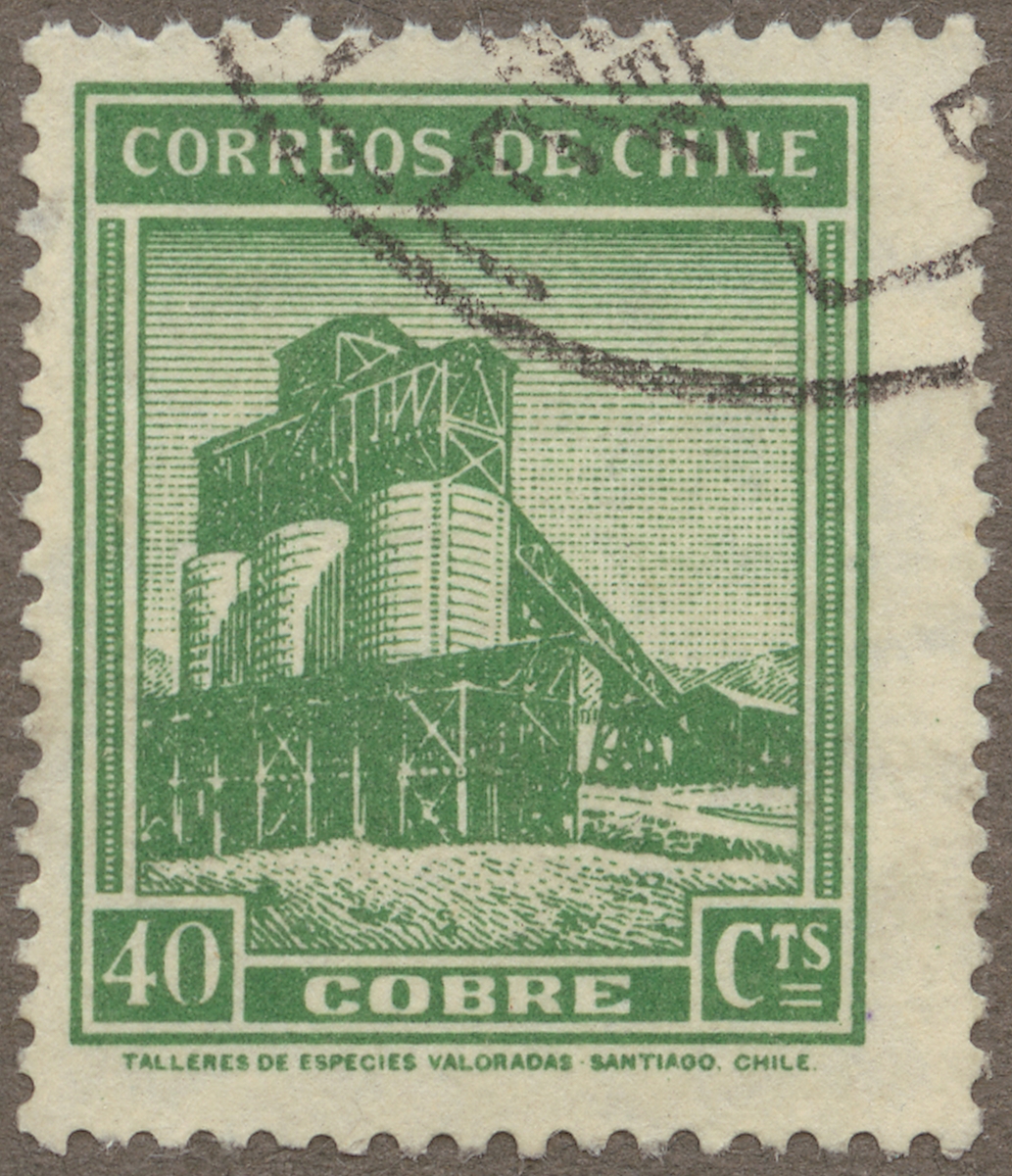 Frimärke från Chile, 1939. Motiv av Chilensk anläggning för kopparframställning