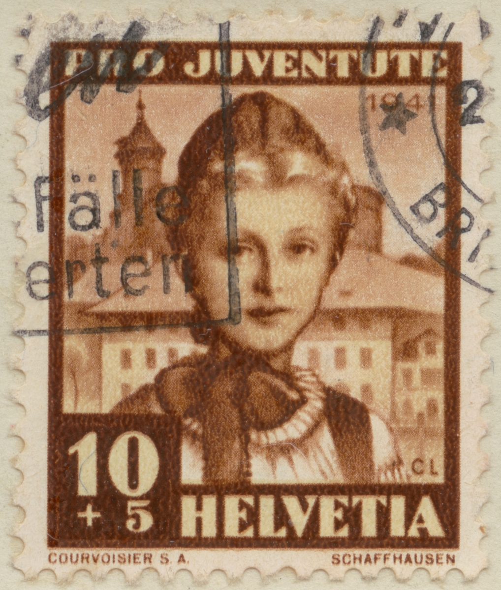 Frimärke från Schweiz, 1941. Motiv av kvinnodräkt, Schaffhausen.