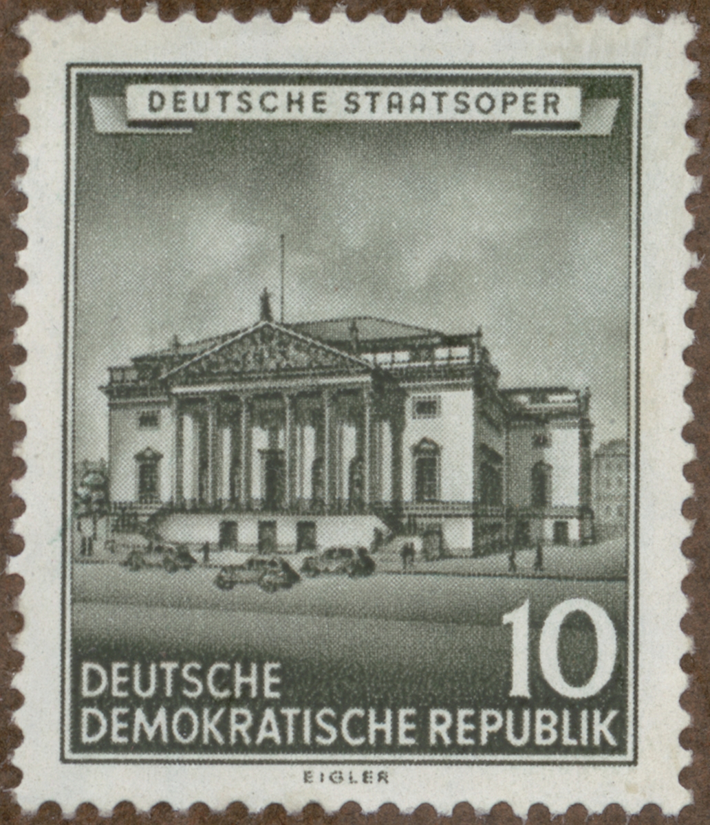 Frimärke från Öst Tyskland, 1958. Motiv av Tyska Staatsoperan