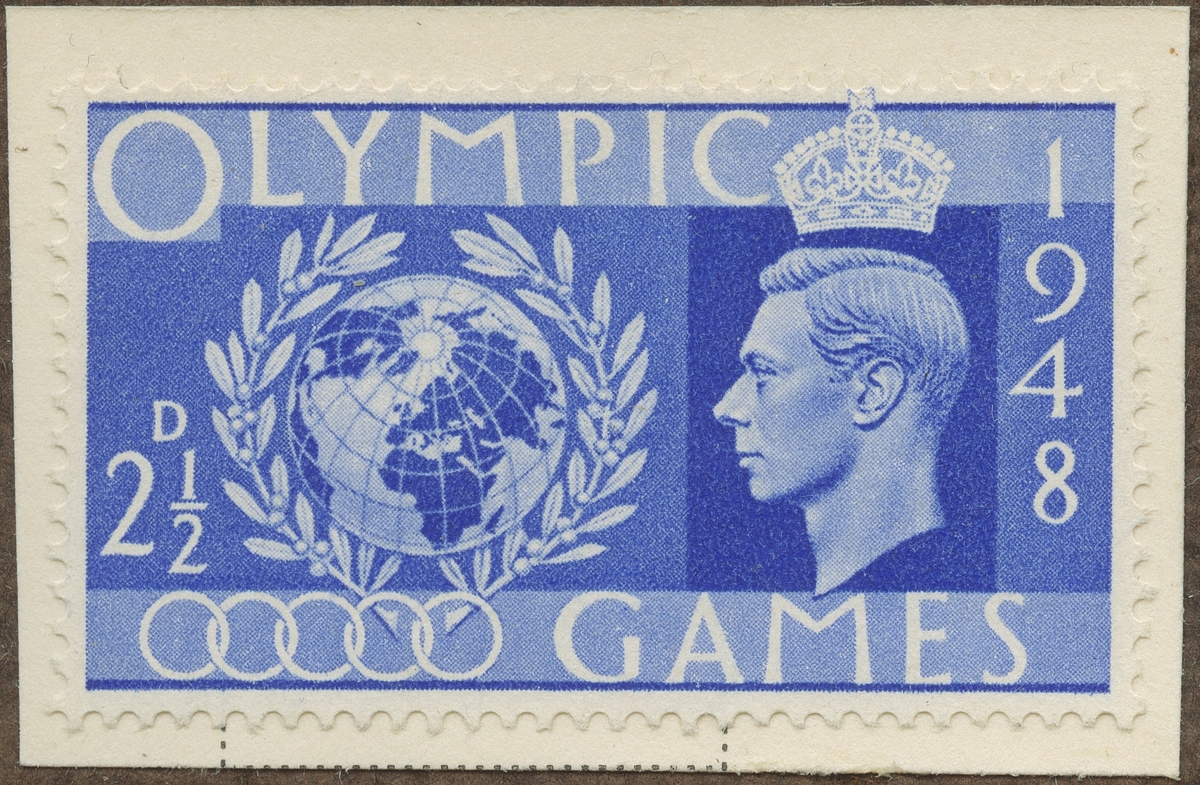 Frimärke från England, 1948. Motiv av Olympiska Spel: 1948. Jordglob med lagerkrans.
