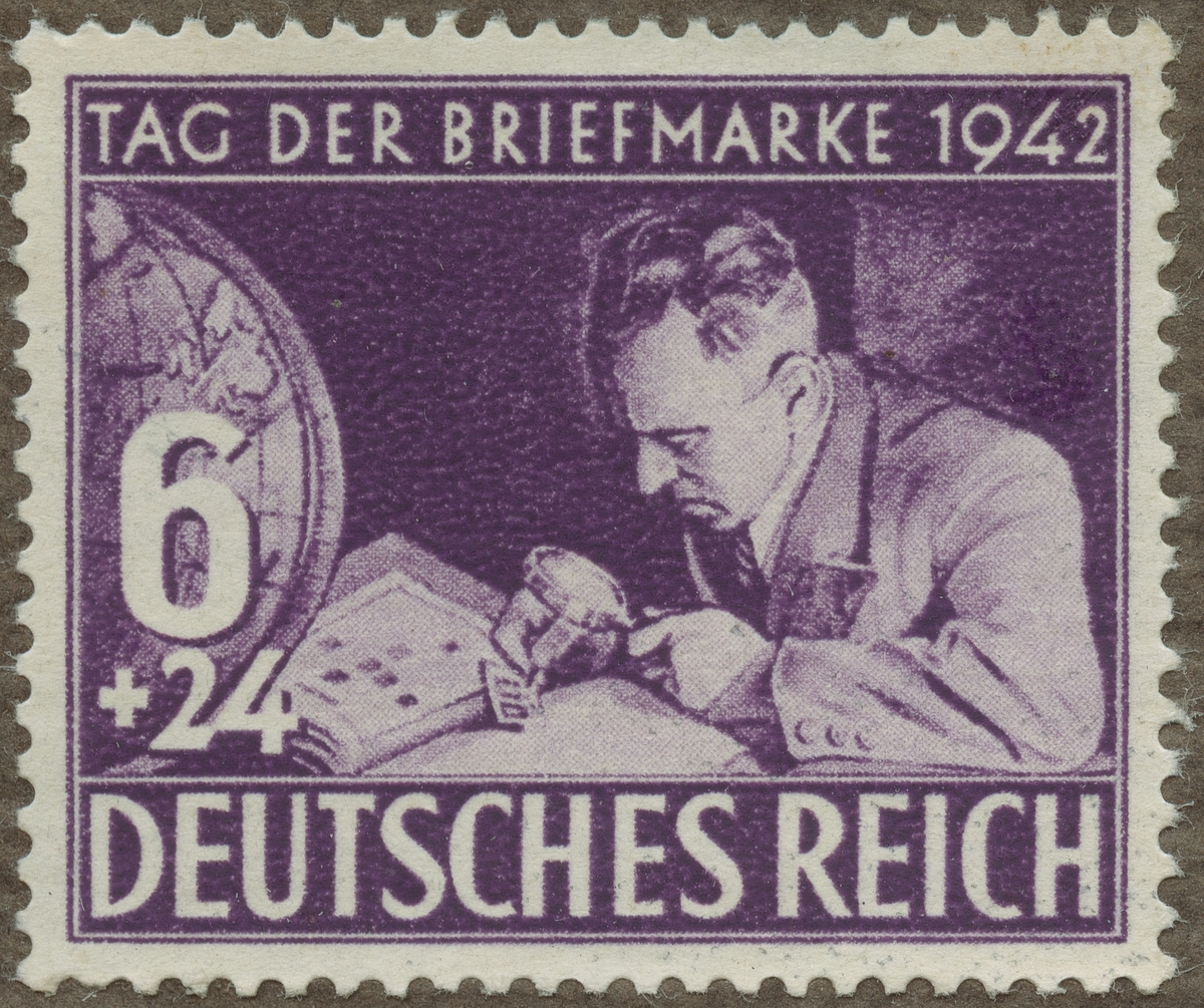 Frimärke från Tyskland, 1942. Motiv av Frimärkssamlare. "Frimärkets Dag"