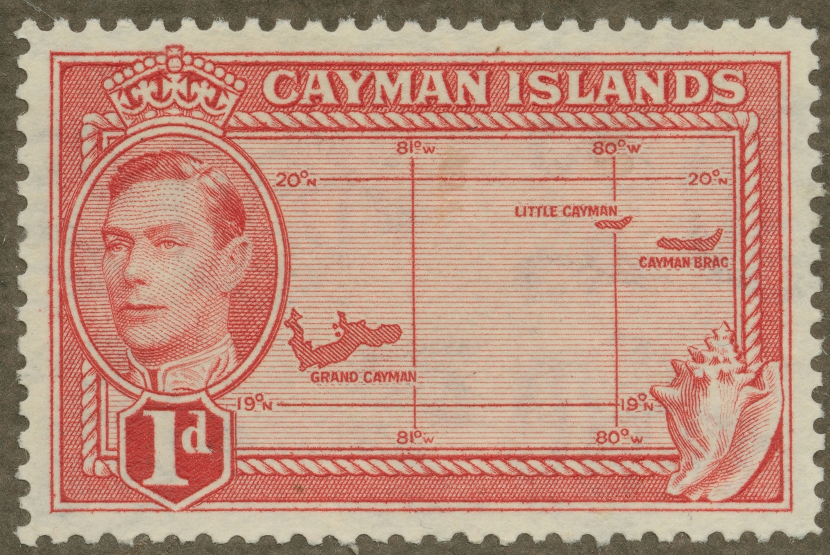 Frimärke från Br. Västindien. Caymanöarna. Motiv av karta över Caymanöarna, Västindien. Kung George VI. "Kronings-Serie".
