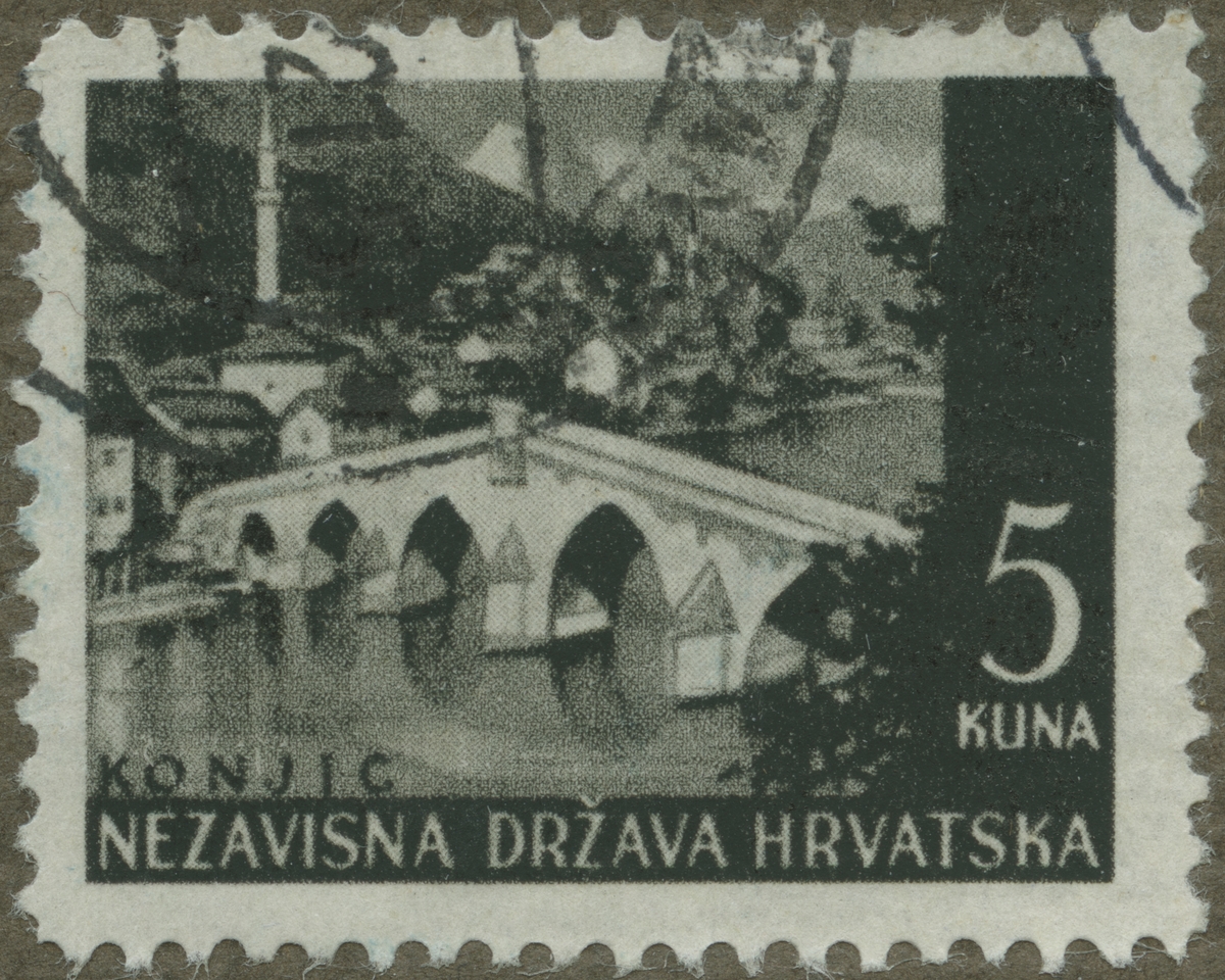 Frimärke från Kroatien, 1941. Motiv av Bro vid Neretva i Konjic