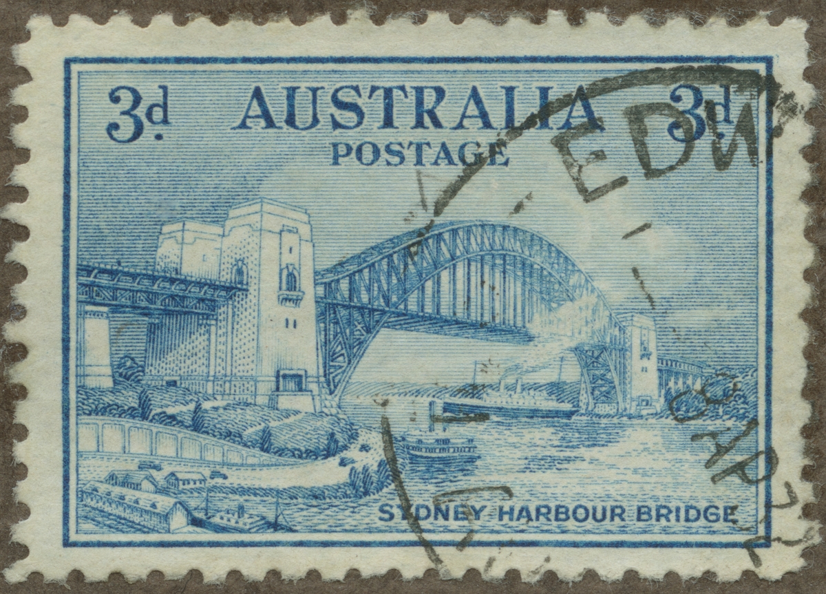 Frimärke från Australien, 1932. Motiv av Den stora högbron vid staden Sidney