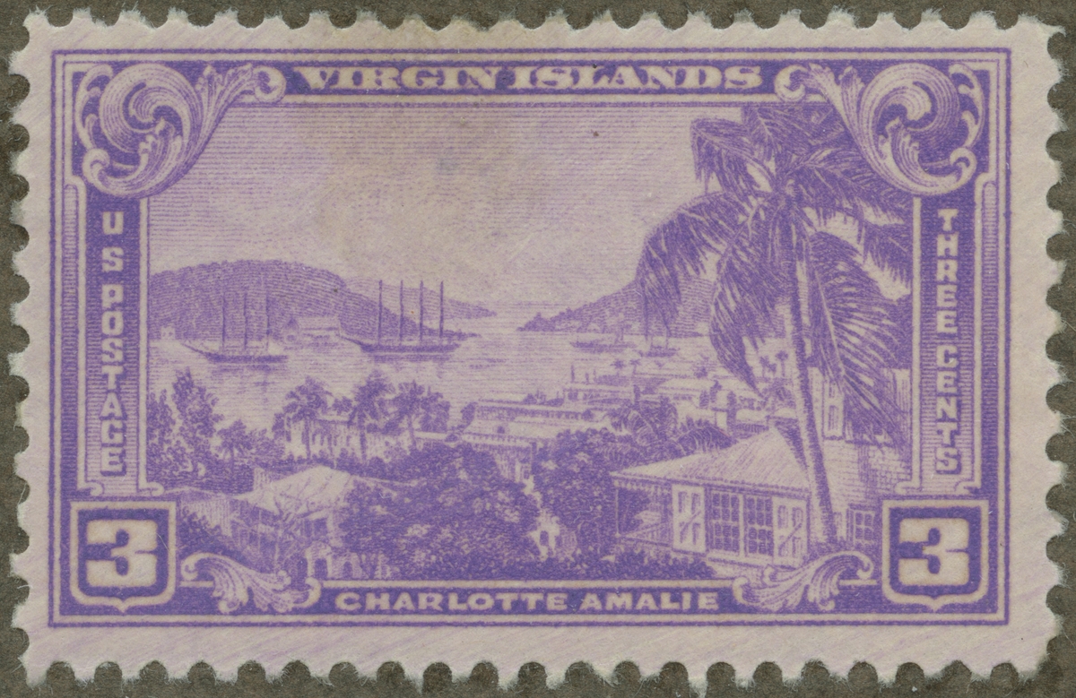 Frimärke från U.S.A., 1937. Motiv av Hamnen Charlotte Amalie på ön S:t Thomas f.d. Danska Västindien numera: The Virgin Islands.---