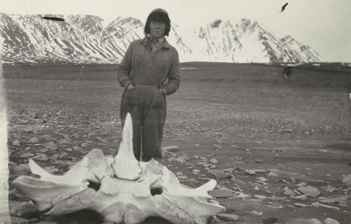 Diverse bilder ur Fred Goldbergs samling. Motiv av Thea Ahlberg vid djurskelett på Novaja Zemlja.