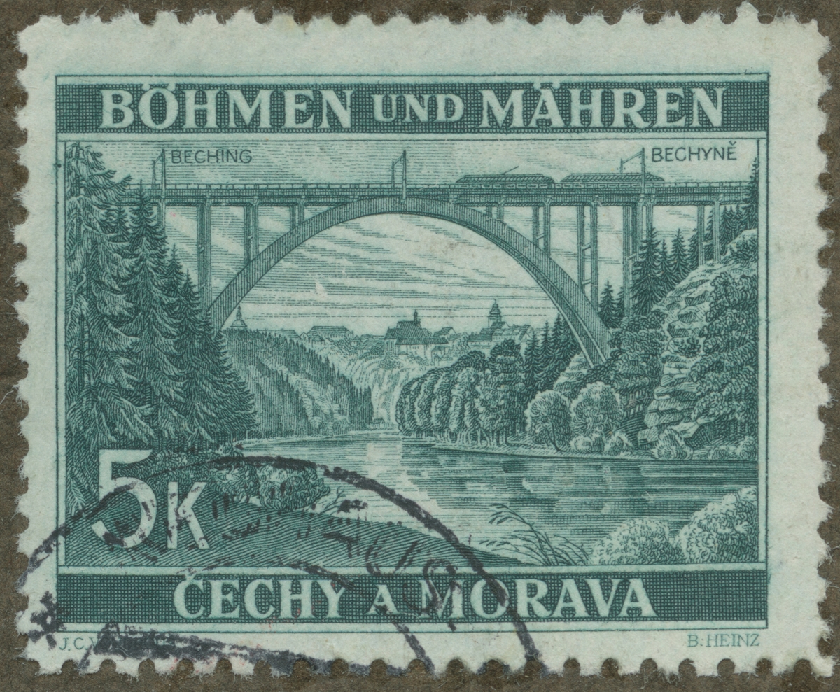 Frimärke från Böhmen-Mähren, 1940. Motiv av Stor bro vid Beching
