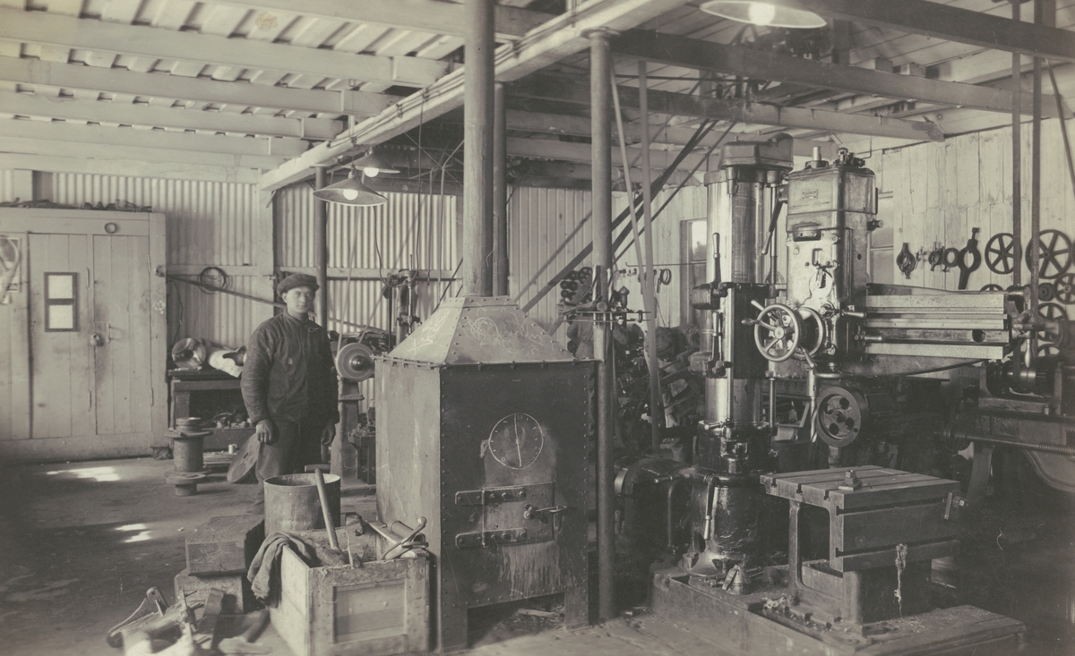 Bild från expedition i Antarktisområdet. Motiv av man i verkstad, 1930.