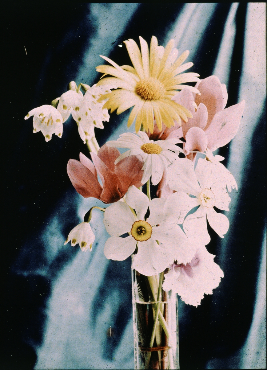 Lumières-autokrom. Stilleben, snödroppar, cyklamen och pingslijor.