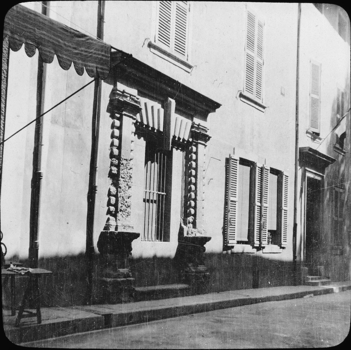Skioptikonbild med motiv av okänd port i södra Frankrike.