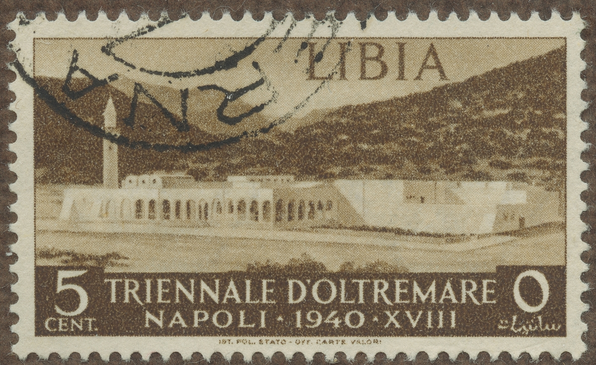 Frimärke från Libyen, 1940. Motiv av Första triennal utställningen "Italien i Afrika" -1940-