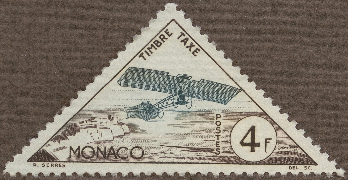 Frimärke från Monaco, 1953. Motiv av Primitivt monoplan "Cage à poule": "-Hönsbur-"