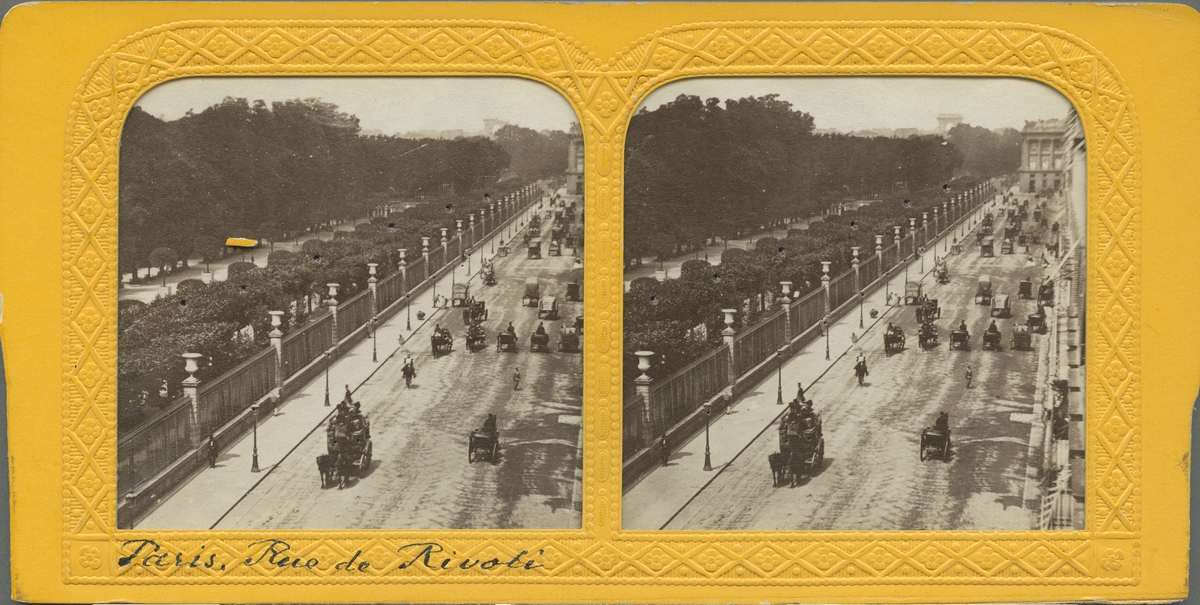 Stereobild med motiv av gatan Rue de Rivoli, Paris.
