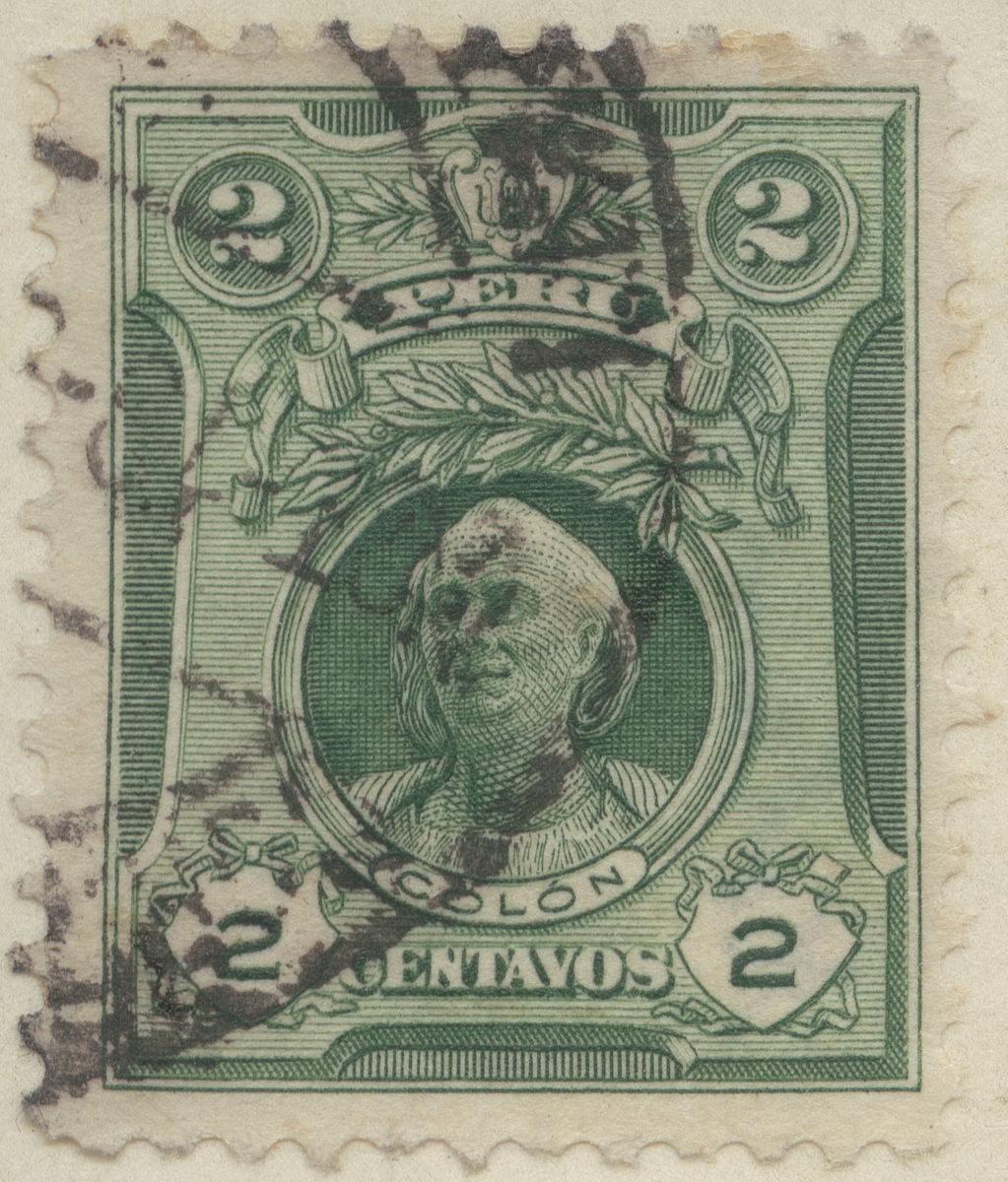Frimärke från Peru, 1909. Motiv av Christopher Columbus 1446-1506