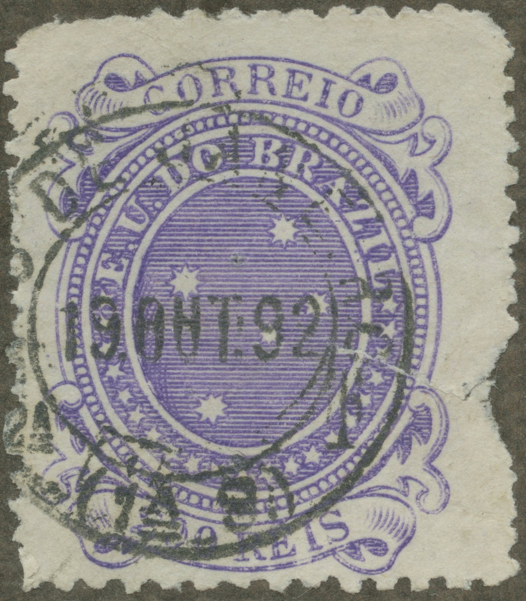 Frimärke ur Gösta Bodmans filatelistiska motivsamling, påbörjad 1950. Frimärke från Brasilien, 1889. Motiv av Stjärnbilden "Södra Korset"