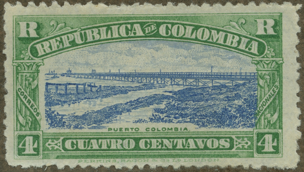 Frimärke från Colombia, 1917. Motiv av Puerto Colombias hamn -Lång bro-