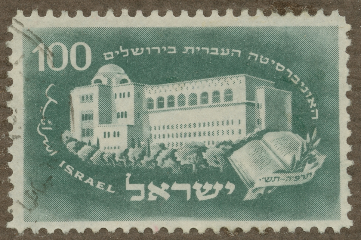 Frimärke från Israel, 1950. Motiv av det Hebreiska Universitetet. "25-årsjubileum".