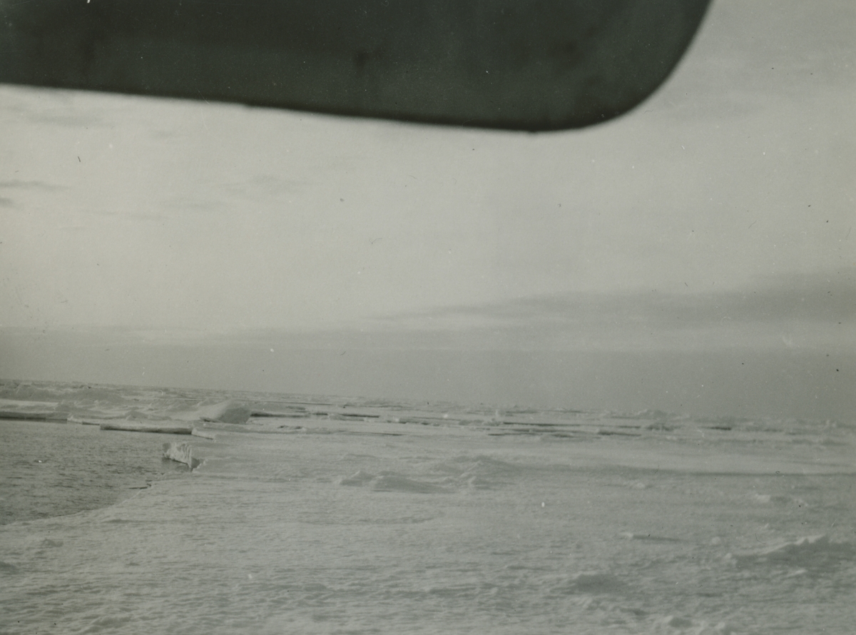 Fotografi från expedition till Östgrönland 1929. Dansk-svensk expedition under ledning av Lauge Koch. Svenska deltagare: Oscar Kulling och Helge Backlund. Vy över islandskap, vatten och himmel.