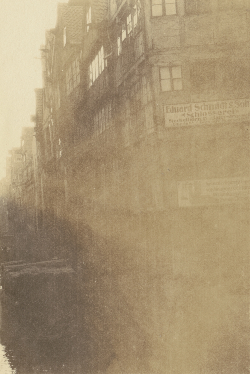 Fotografi från Albin Ahrenbergs resa till Grönland 1929. Motiv av hus i tysk stad.