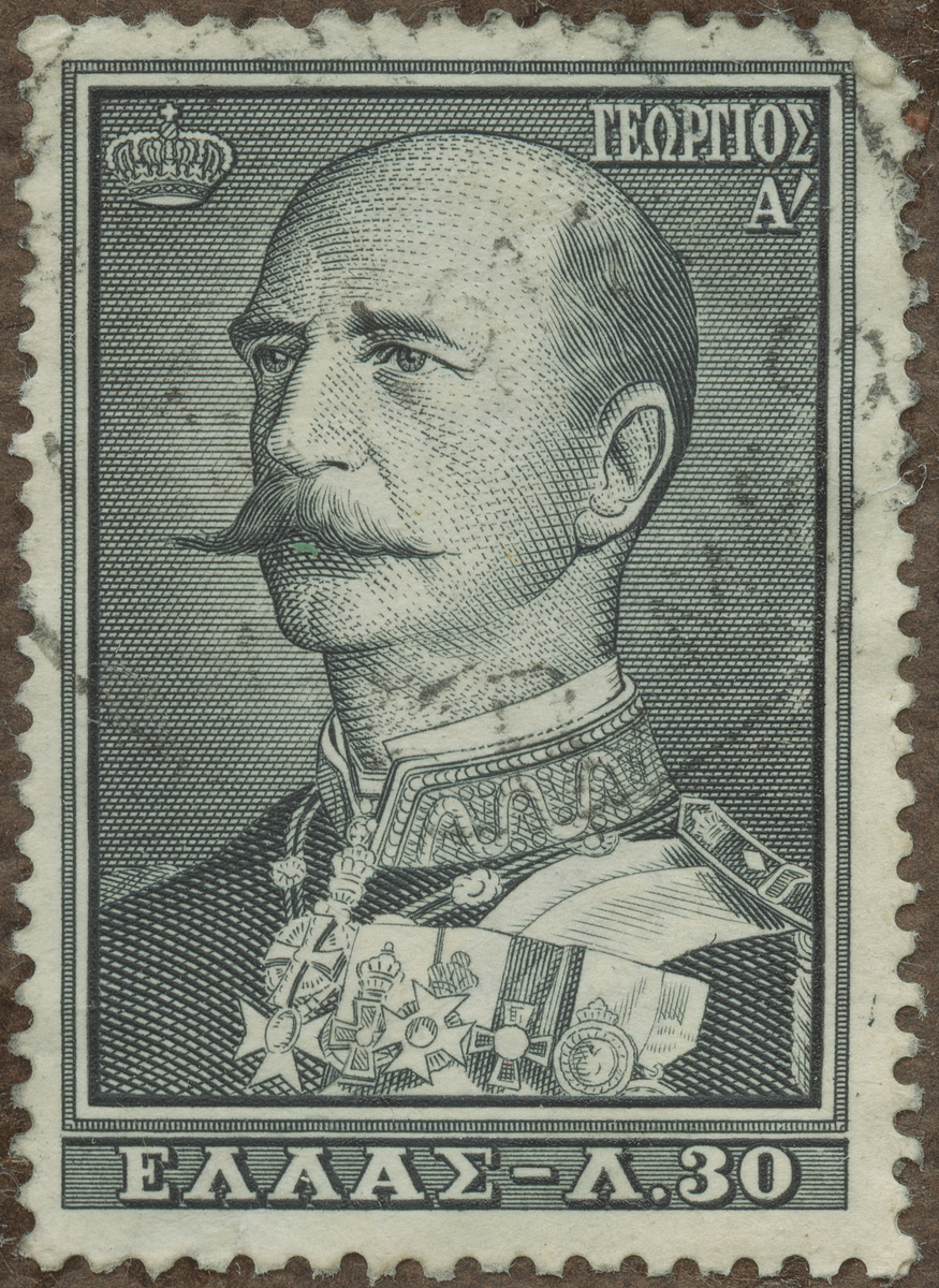 Frimärke från Grekland, 1956. Motiv av Kung Georg I. av Grekland 1845-1913.