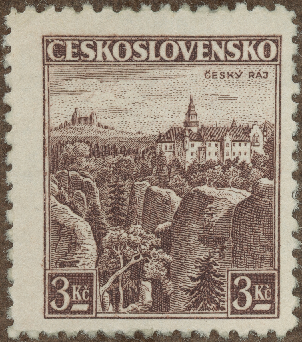 Frimärke från Tscheckoslovakiet, 1936. Motiv av Slottet eský Ráj