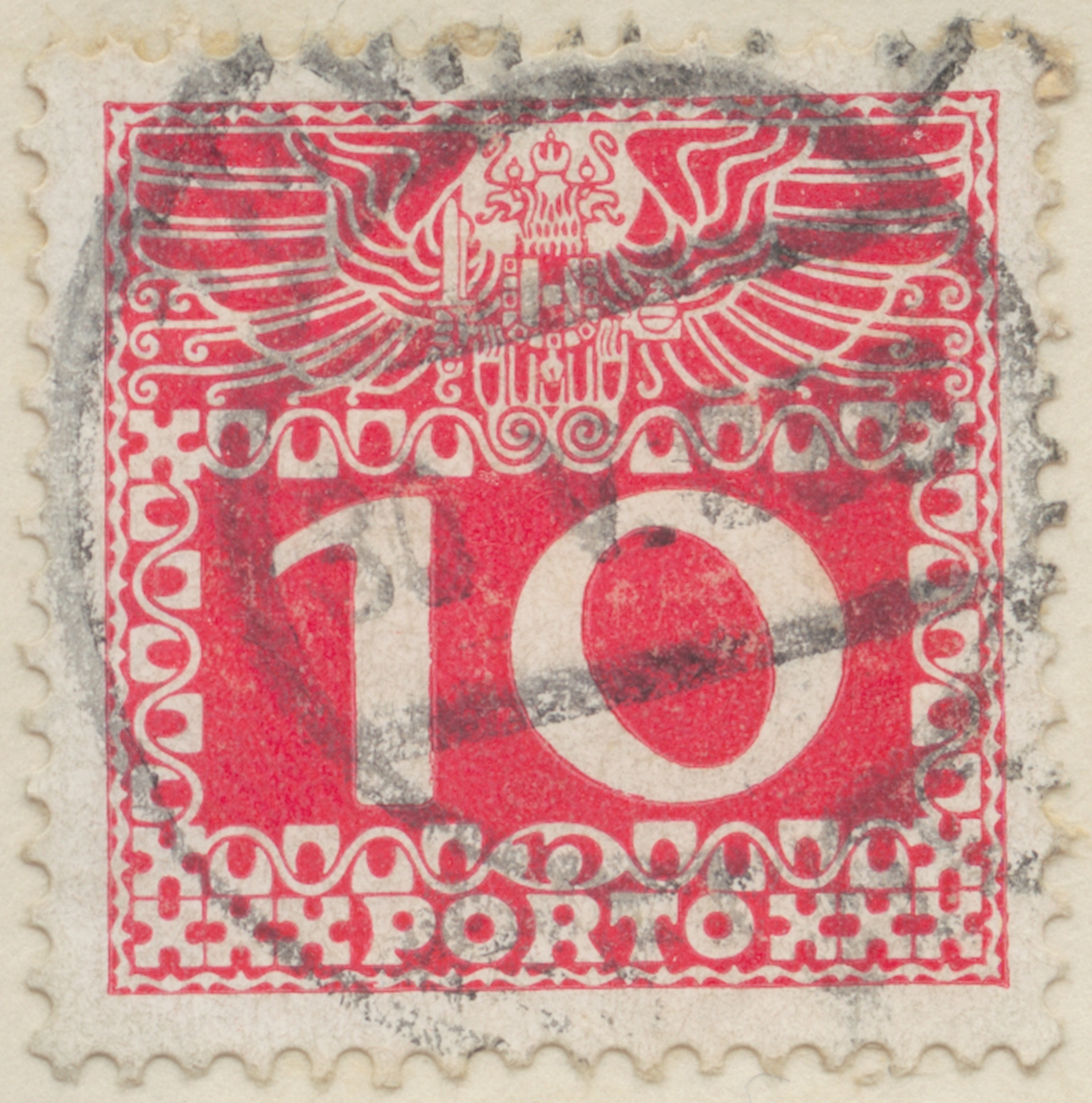 Frimärke från Österrike, 1908. Motiv av Dubbel-Örn: Österrikes Vapen. -Lösenmärke-