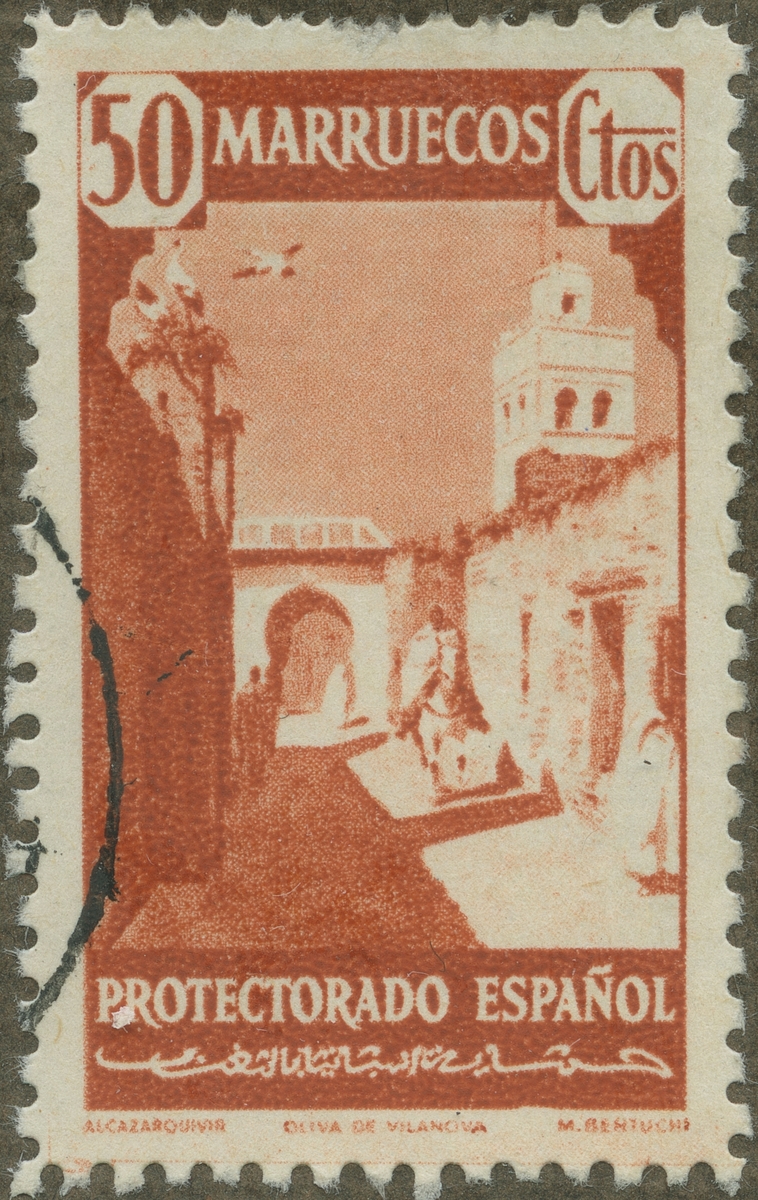 Frimärke från Spanska Marocko, 1940. Motiv av Stadsbild från Alcazarquivir