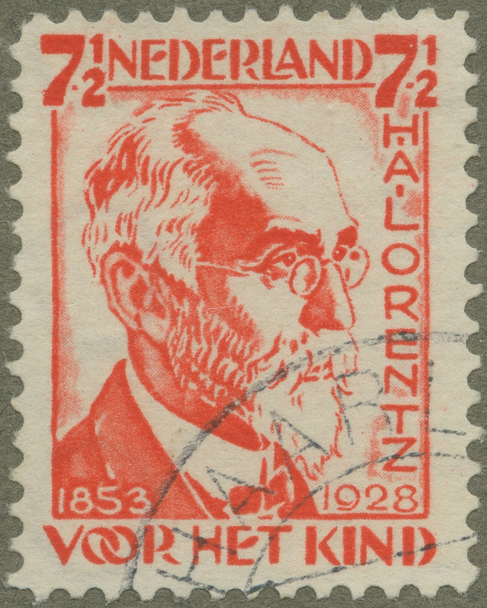 Frimärke från Nederländerna, 1928. Motiv av Hendrik Antoon Lorentz 1853-1928. Matematisk fysiker, Nederländerna. Begreppet "elektroner". Optiken hos rörliga kroppar.