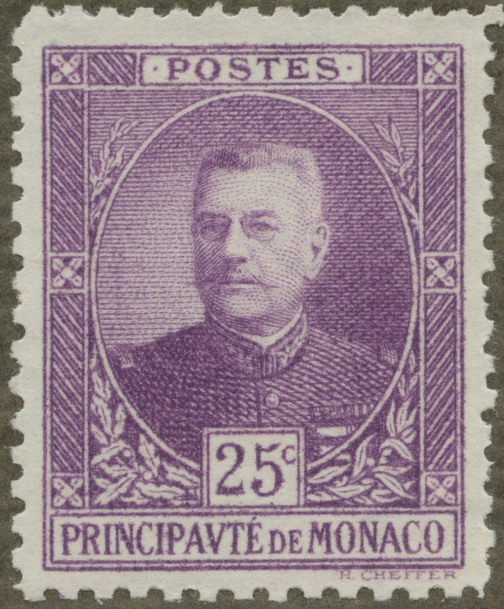 Frimärke från Monaco, 1923. Motiv av Prins Louis II av Monaco 1870-1949. Oceanograf