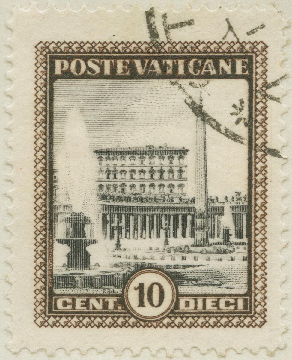 Frimärke från Vatikanen (-Italien-), 1933. Motiv av Petersplatsen: Obelisken: Kolonnaden. Rom.