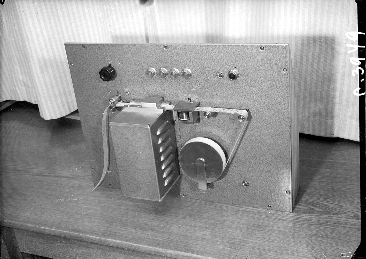 Remsläsare. Dokumentation av byggandet av matematikmaskinen BESK på Drottninggatan i Stockholm. Dielektrisk remsläsare.