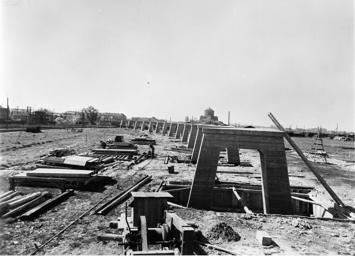 Byggherre: Byggnadsaktiebolaget Contractor, Stockholm. Pelare för SJ:s viadukt över Olskrokens bangård.