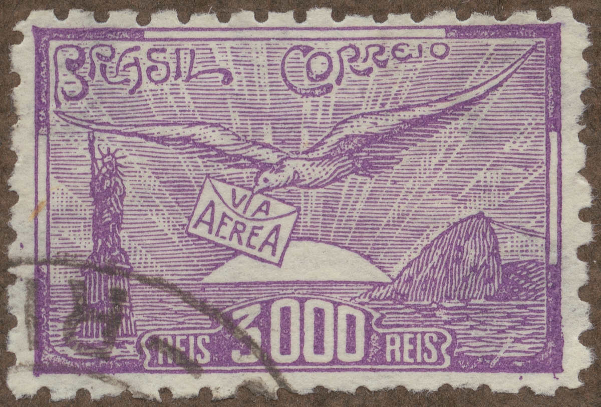 Frimärke från Brasilien, 1929. Motiv av Fågel som symbol för flyget "Allegori: luftpostruten emellan Brazil och USA.-"