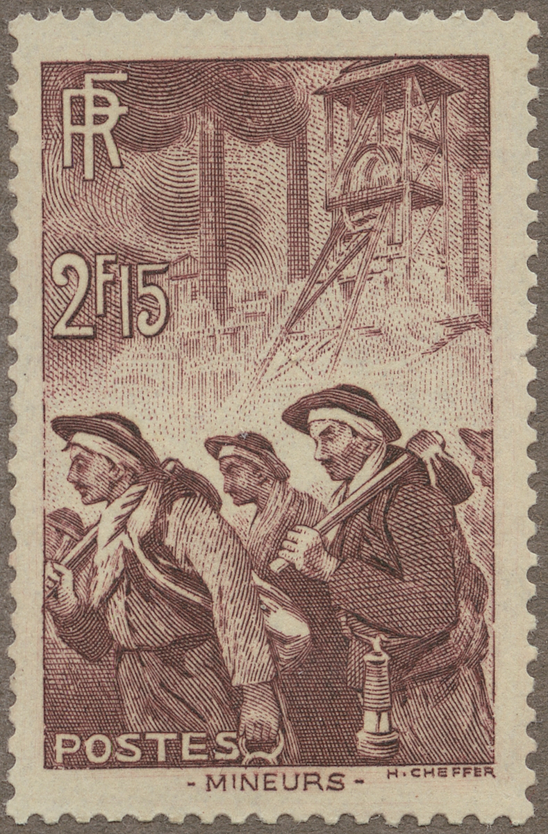 Frimärke från Frankrike, 1938. Motiv av Fransk gruvarbetare.