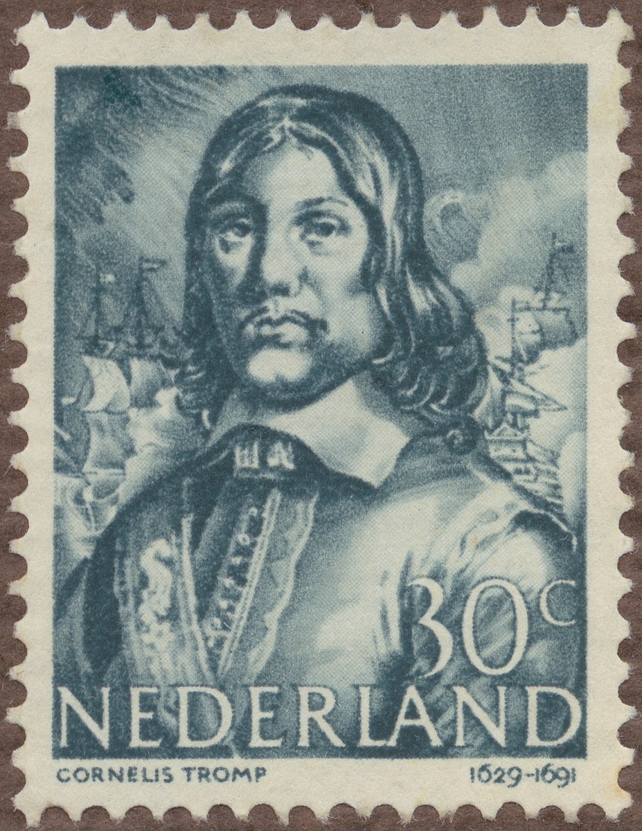 Frimärke från Nederländerna, 1943. Motiv av Cornelius Tromp 1629-1691 Holländsk amiral