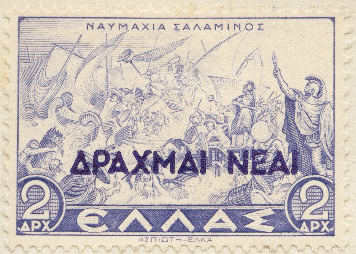 Frimärke från Grekland, 1937. Motiv av Slaget vid Salamis År 480 f.K.