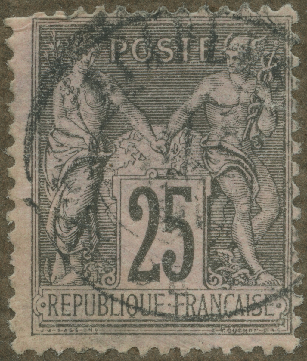 Frimärke ur Gösta Bodmans filatelistiska motivsamling, påbörjad 1950. Frimärke från Frankrike, 1876. Motiv av Symbol för fred och handel.