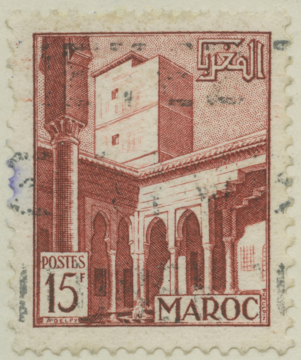 Frimärke från Franska Marocko, 1951. Motiv av Oudayas, gården.