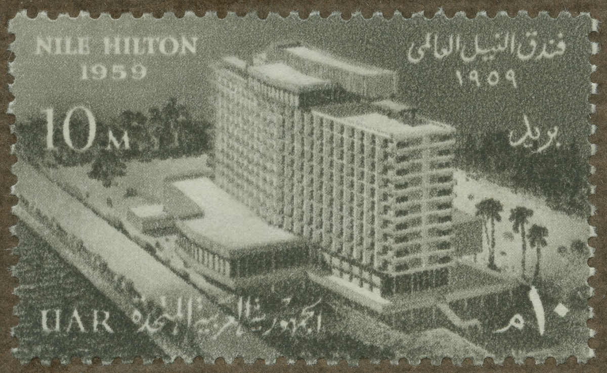Frimärke från Fören. Arab Republic, 1959. Motiv av Hilton Hotel i Caire.