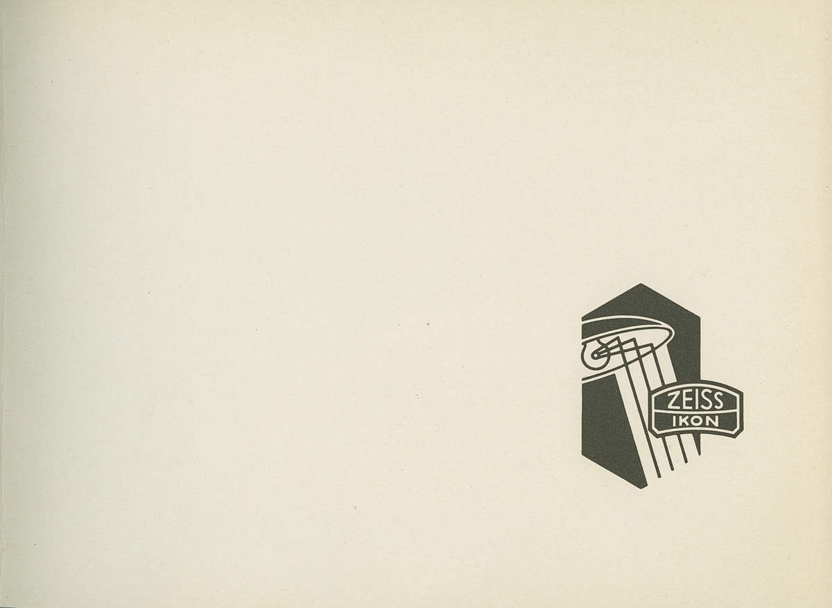 Försättsblad i boken "Zeiss Spiegellicht System Zeiss-Wiscott in der Architektur : eine Sammlung durchgeführter Beleuchtungsanlagen". Boken gavs ut av Berlin-Zehlendorf : Zeiss Ikon A.G., Goerzwerk, 1937.