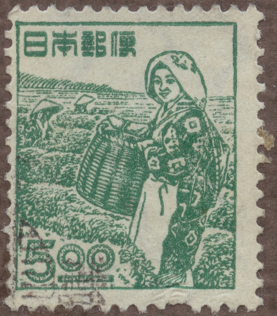 Frimärke från Japan. Motiv av insamling av "thé".