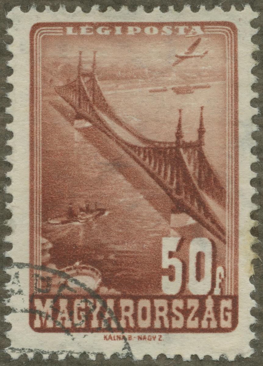 Frimärke från Ungarn, 1947. Motiv av "Frihetsbron" Budapest