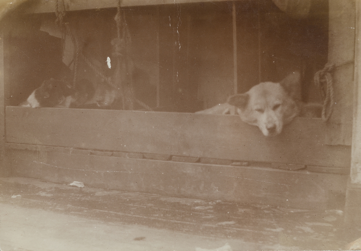 Fotografi från första svenska Antarktisexpeditionen 1901-1904. Motiv av ett par hundar.