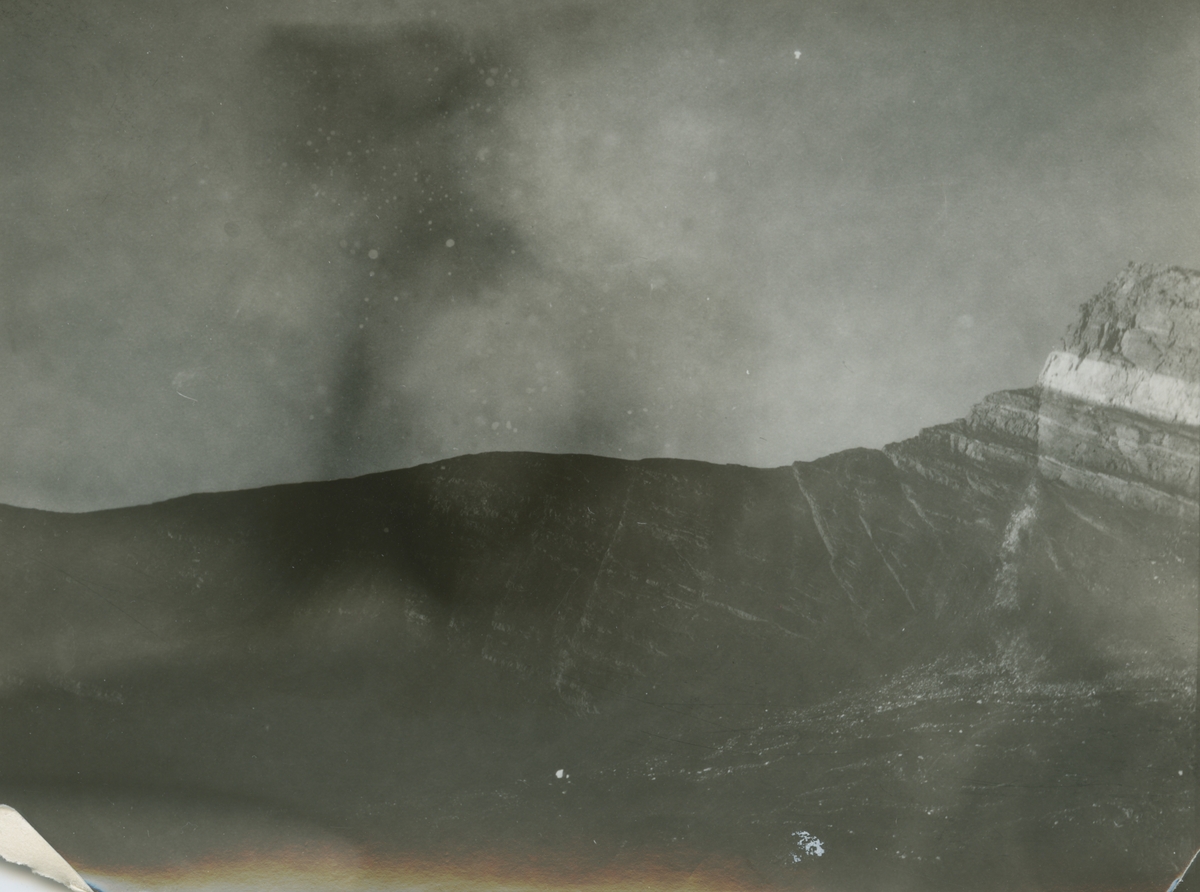 Fotografi från expedition till Östgrönland 1929. Dansk-svensk expedition under ledning av Lauge Koch. Svenska deltagare: Oscar Kulling och Helge Backlund. Vy över bergslandskap.