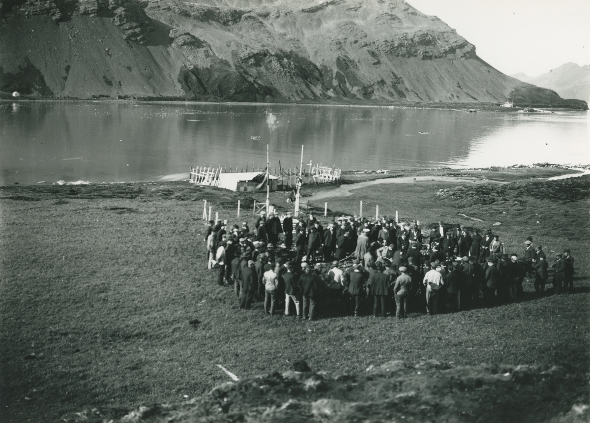 Bild från expedition i Antarktisområdet. Motiv av Ernest Shackletons begravning. Grytviken, 1922.
