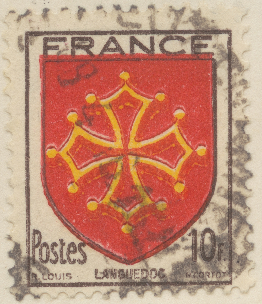 Frimärke från Frankrike, 1944. Motiv av Vapen Languedoc "Serie: franska provinsers vapen"