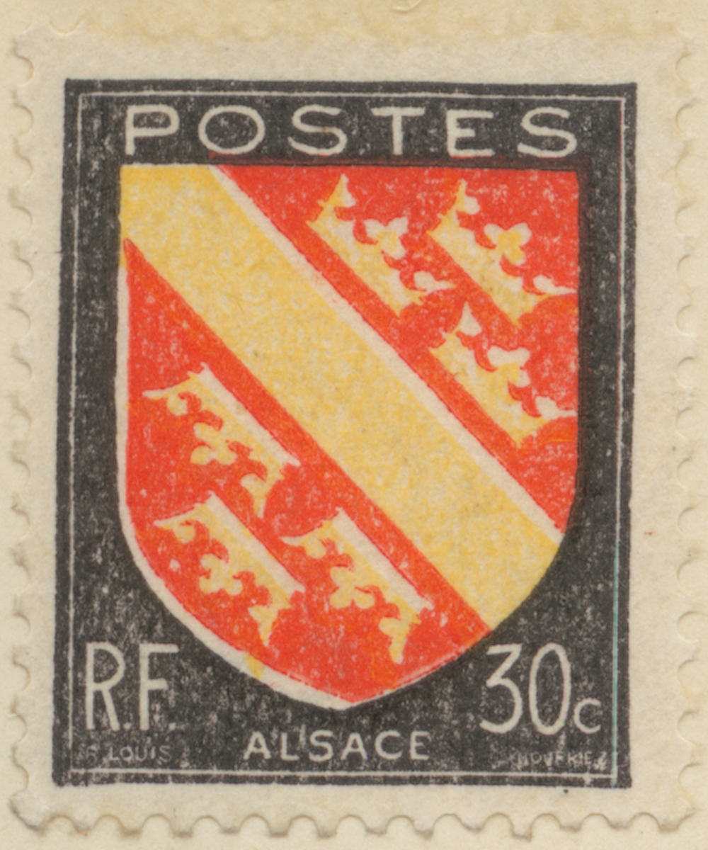 Frimärke från Frankrike, 1946. Motiv av Vapen Alsace "Serie: franska provinsers vapen"
